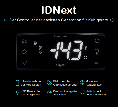 L'eccezionale affidabilità del controllo tecnico dei punti di refrigerazione è stata implementata nel nuovo IDPlus con un display più grande, simboli colorati e un pannello frontale arrotondato; disponibile con display in blu, ambra e rosso e con pannello frontale bianco, blu e grigio scuro. Il nuovo ID offre anche numerose opzioni di personalizzazione per soddisfare le esigenze e i desideri dei clienti.